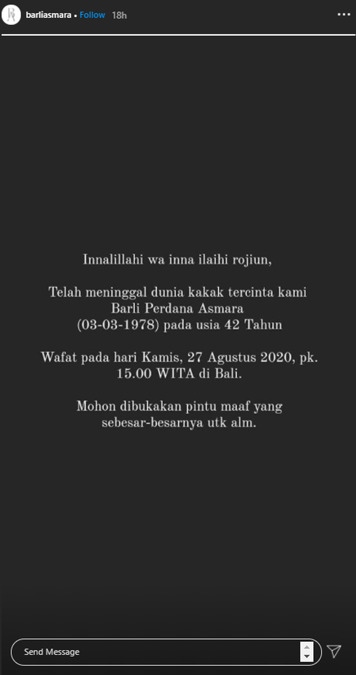 Hanna Kirana Juga Idap Flek Paru-Paru Sering Mengeluh Sakit di Dada Dia ngomong juga saya menanggapi percaya tidak percaya dia sudah minta maaf ke orang tuanya ke aku juga sebut Ilyas Bachtiar. Adapun kalau kalau orang yang kita zhalimi itu sudah tidak kita ketahui dimana tinggalnya atau kalau dia telah meninggal dan kita tidak sempat untuk meminta maaf kepadanya maka -secara ringkas- berikut amalan yang bisa kita lakukan. Pesan terakhir beliau waktu masih bisa komunikasi adalah menyampaikan maaf sebesar-besarnya ke semua orang yang pernah tersakiti terzolimi ujar Ferro Sopacua anak kandung Max Sopacua.